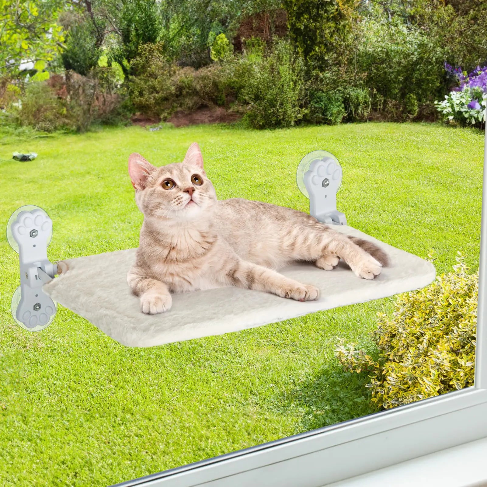[Comfortable Cat Window Perch: This cat window perch features a dual-fabric bedspread to accommodate different seasons and room temperatures so cats can comfortably perch on it and enjoy sunbathing. The reverse side is a breathable sandwich mesh fabric and the bedspread can be easily changed with a zipper. Both fabrics are scratch resistant chemical odor free and machine washable. Foldable Cat Window Hammock: This cat hammock for window has a foldable feature if you want to use the curtains it can be folded upwards without removing the bedspread so you can use the curtains undisturbed without removing the window bed. Very convenient and space saving Sturdy Metal Frame: Its frame is made of painted stainless steel material and connected with hardware sturdy and durable; The cat window seat measures 20.5 "L x 11.8 "W x 8.6 "H please install it on a glass larger than 24 " W x 9 " H "Cats Favorite Hammock: Cats love to sunbathe and climb. The cat window hammock is designed to satisfy both the sunbathing and climbing requirements of cats. Soft cat window perch allow cats to fall asleep and enjoy a cozy perch while satisfying their natural climbing instincts which is good for cats health and well-being" Thickened Strong Suction Cups: The cat hammock uses by four suction cups firmly sticking to the glass it can withstand up to 40 lbs weight the suction force is extremely strong; Tips: before use please clean the suction cups soak them in hot water for three minutes it can quickly activate the suction power of them]